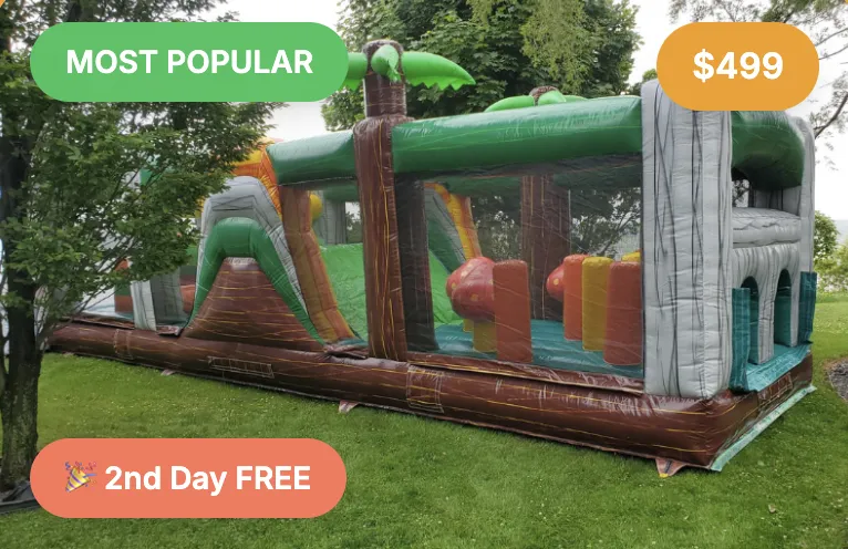 A premium inflatable includes a bounce house with a slide, a small obstacle course, or a 16 ft slide. These are larger, more feature-rich units designed to provide extra fun and excitement for your party!